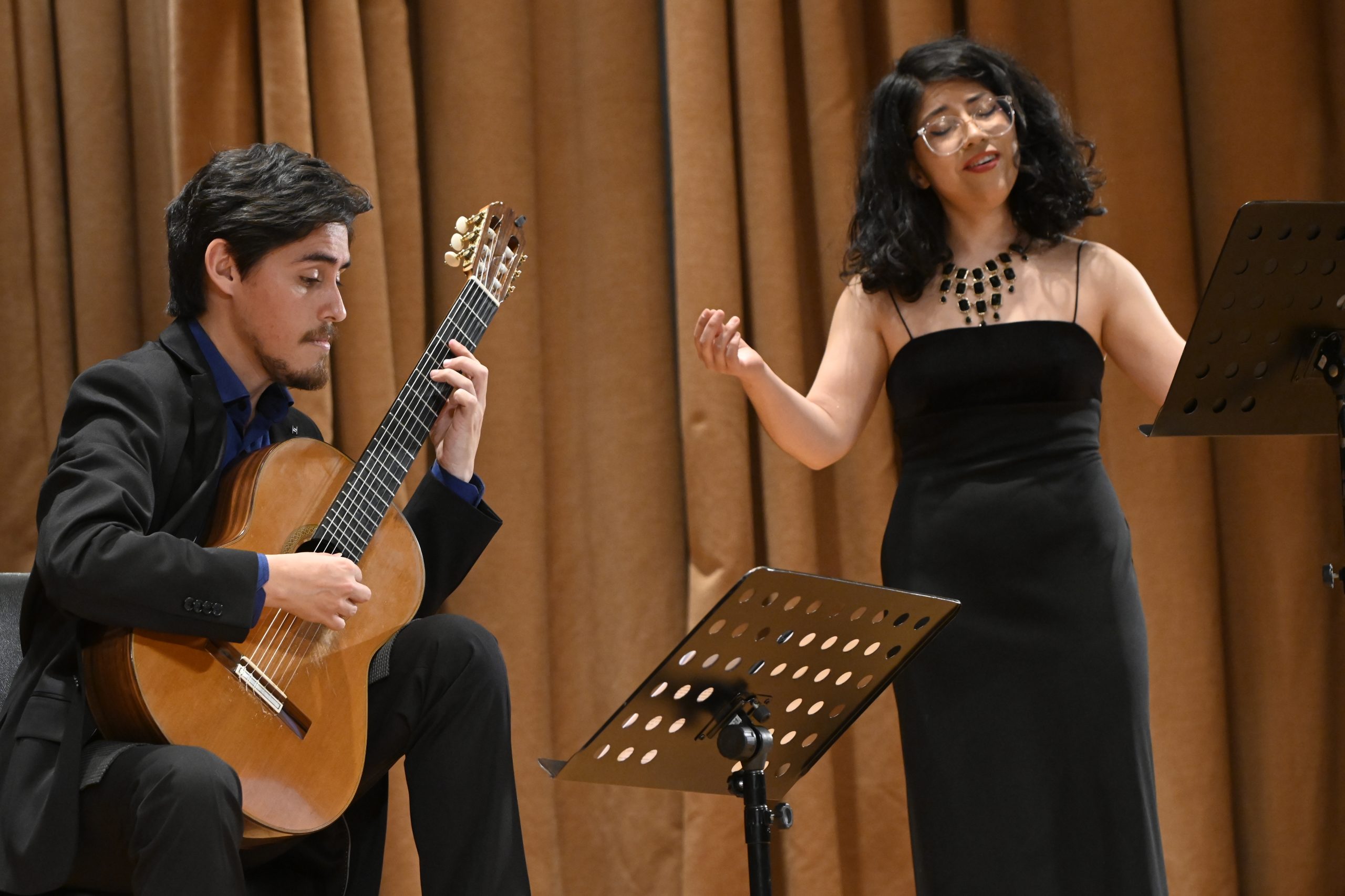 Los talentosos músicos Salem Quiroz (soprano) y Álex Panes (guitarrista) se presentaron el miércoles 12 de noviembre en el Auditorio del Colegio Médico, con un Recital de Guitarra y Música de Cámara, gestionado el Conservatorio de Música Laurencia Contreras. Ambos artistas se habían presentado juntos en muchas ocasiones antes, desde el año 2017. Incluso decidieron consolidarse como dúo y tienen un amplio repertorio, que va desde la música popular, la música barroca, la música de tradición escrita -principalmente del siglo XX- y contemporánea.
