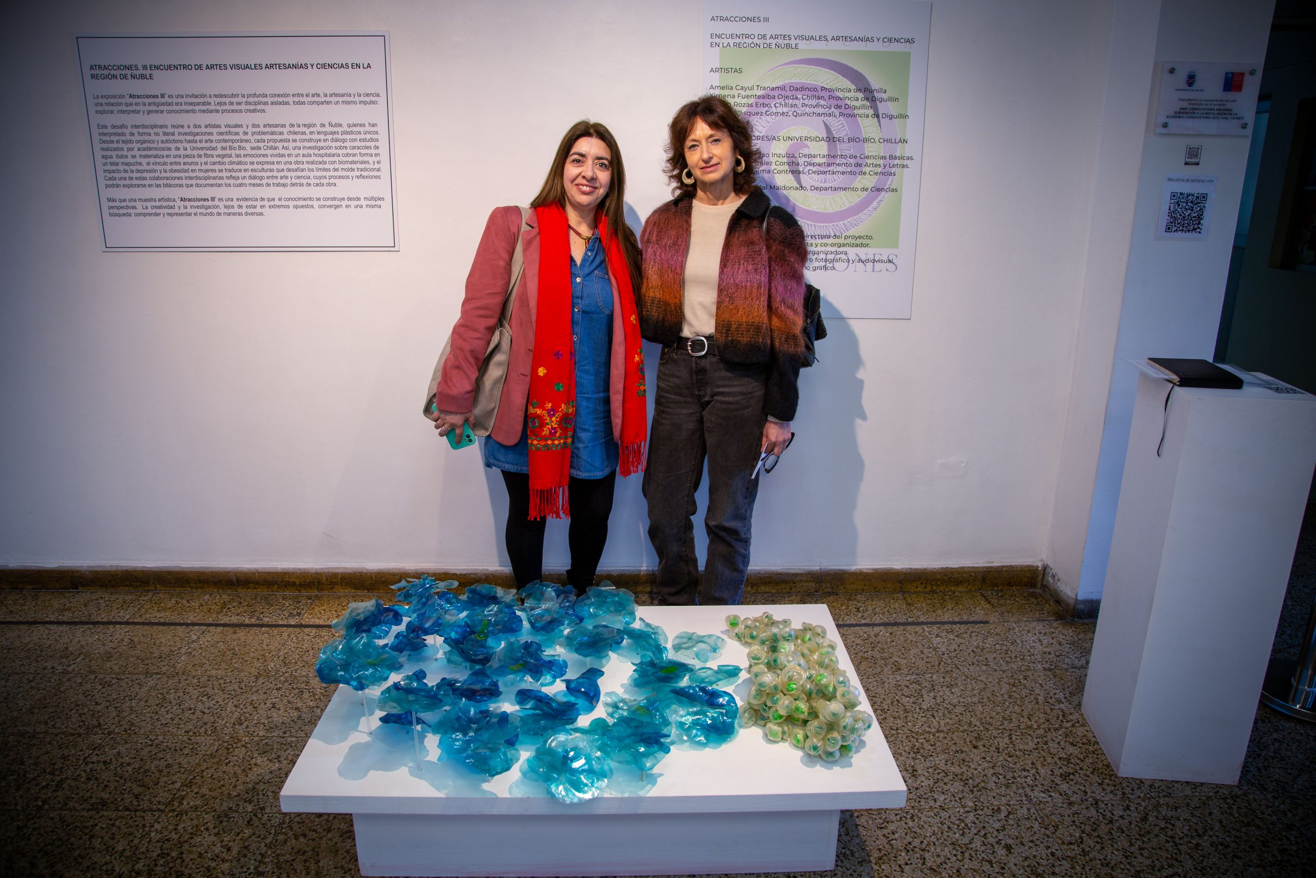 Hasta el 30 de octubre permanece abierta a todo público la exposición «Atracciones III», en la Galería FEDUH del Campus La Castilla de la Universidad del Bío-Bío. Esta iniciativa expresa los resultados del Proyecto Fondart del mismo nombre, cuya responsable es la académica Tania Faúndez. Participan dos artistas visuales y dos artesanas, quienes interpretan, de forma no literal, investigaciones científicas de problemáticas chilenas, en lenguajes plásticos únicos.