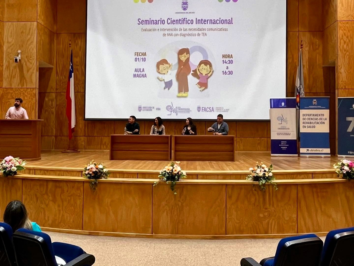 La actividad tuvo lugar en el Aula Magna del Campus Fernando May e incluyó también un workshop sobre evaluación e intervanción pragmática, para reforzar las capacidades locales en atención exclusiva a estudiantes del Colegio Inglés My College. Utilizaron estrategias personalizadas para el monitoreo del desarrollo comunicativo, en aspectos vocales y auditivos, los cuales generalmente no son abordados en esta población, además de actividades dirigidas a apoderados, familiares y la planta profesional de atención, quienes finalmente adquirieron herramientas prácticas de apoyo.